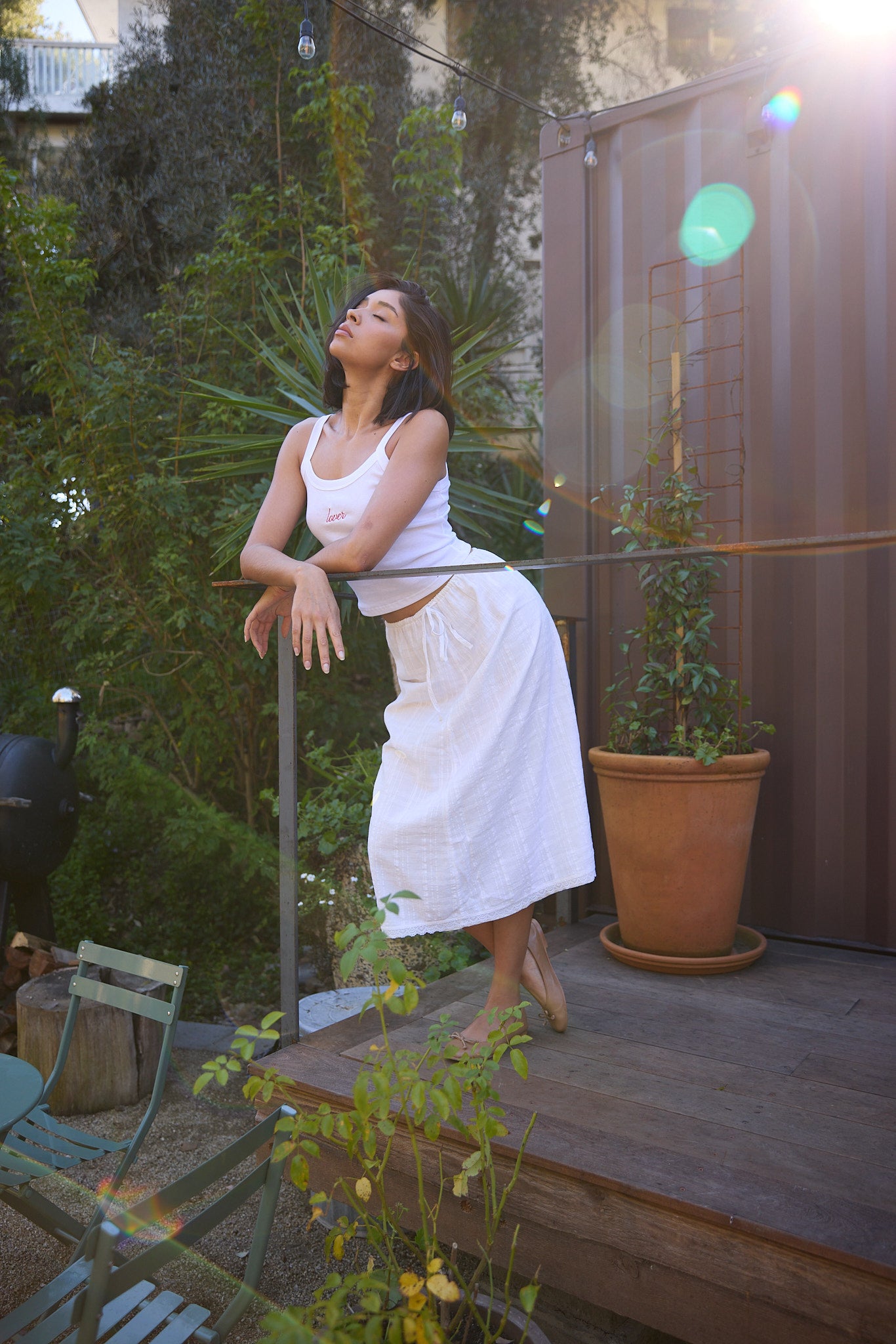 This embroidered tank is made for slow starts and soft moments before the day begins. Designed in an easy, breathable cotton with subtle “lover” stitching, it feels relaxed, personal, and quietly special. Perfect for getting ready, lounging with your girls, or slipping on between hair and makeup.